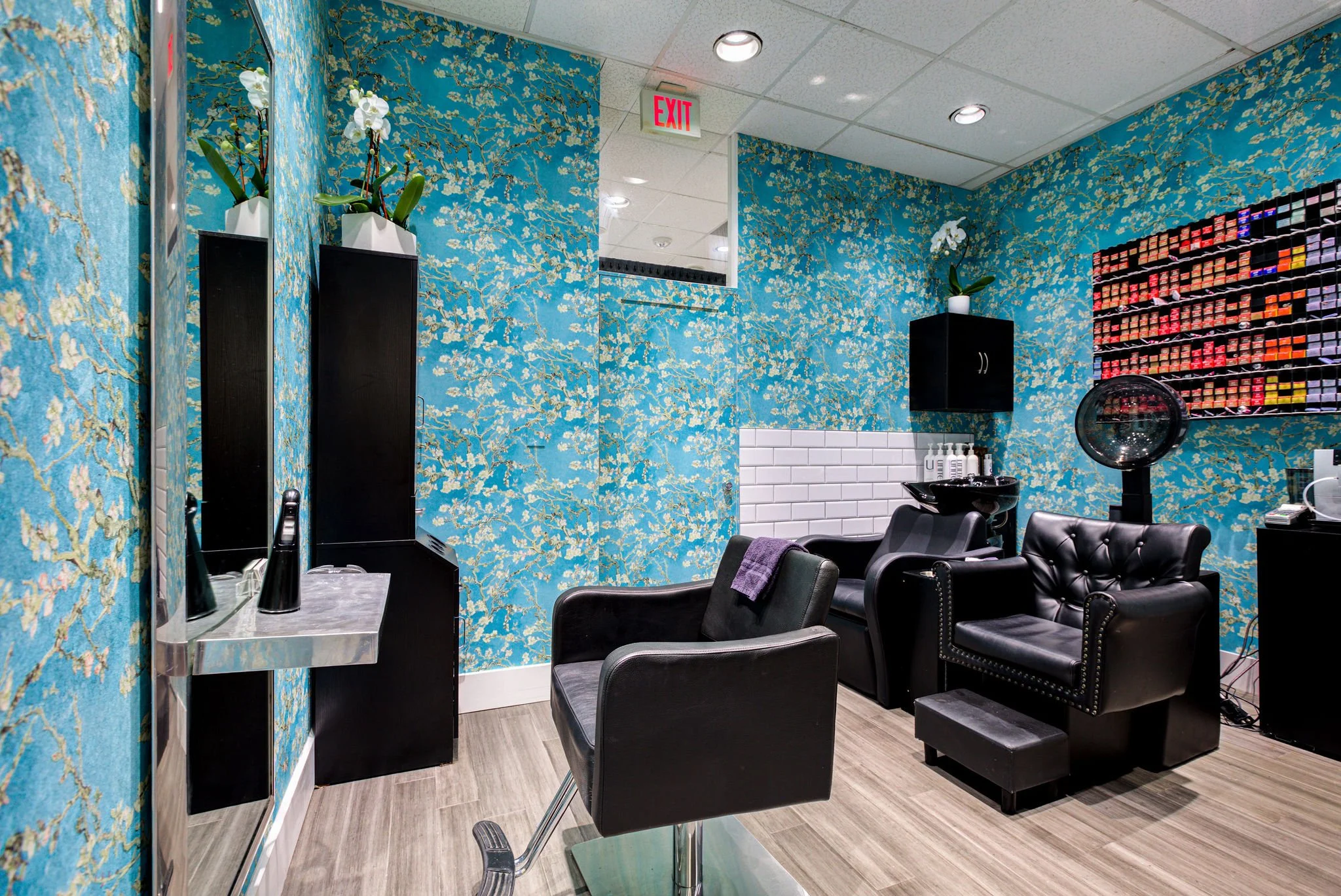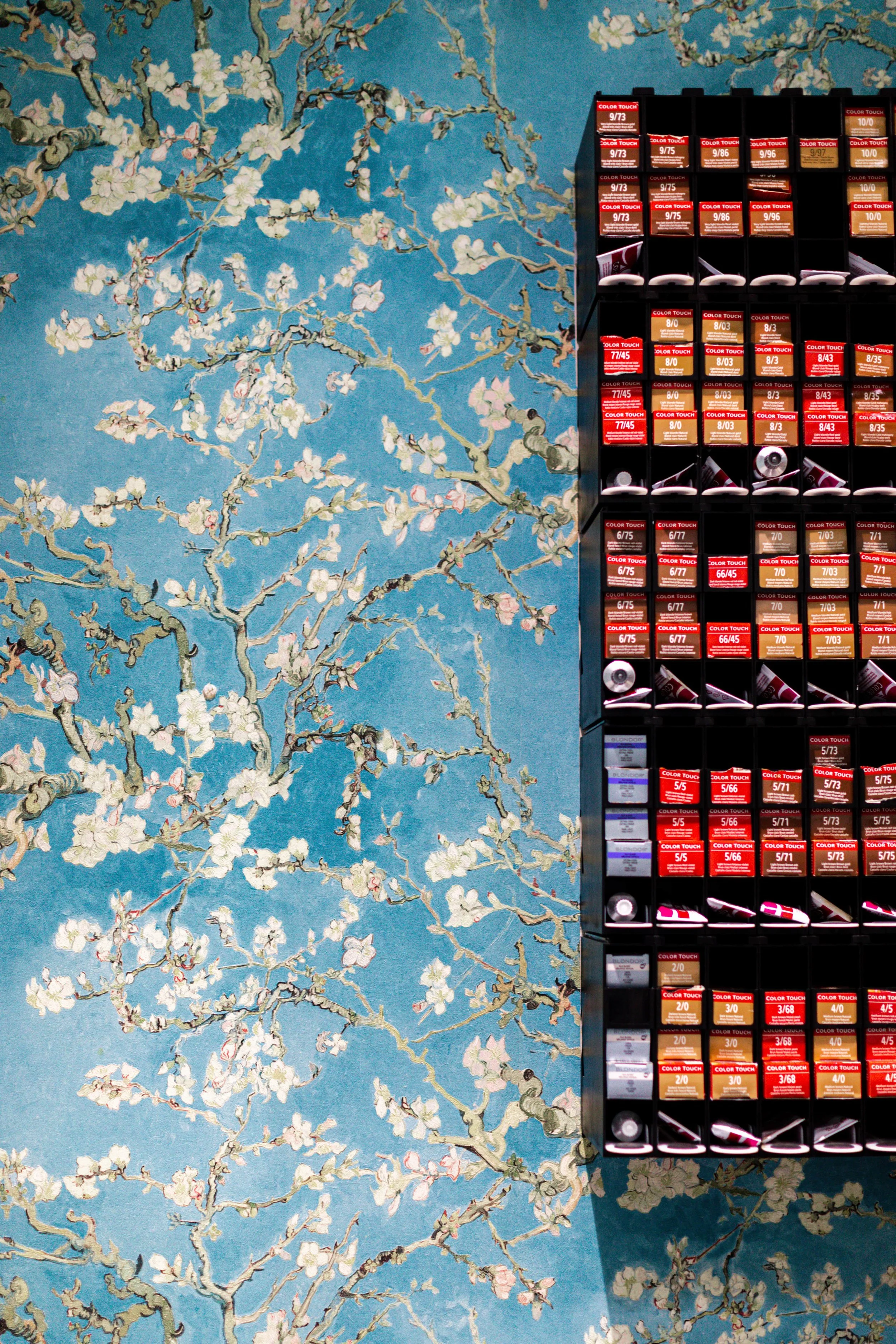 Van Gogh’s bold strokes and Japanese printmaking influence create a captivating atmosphere, inviting clients into a space where art and beauty intertwine.